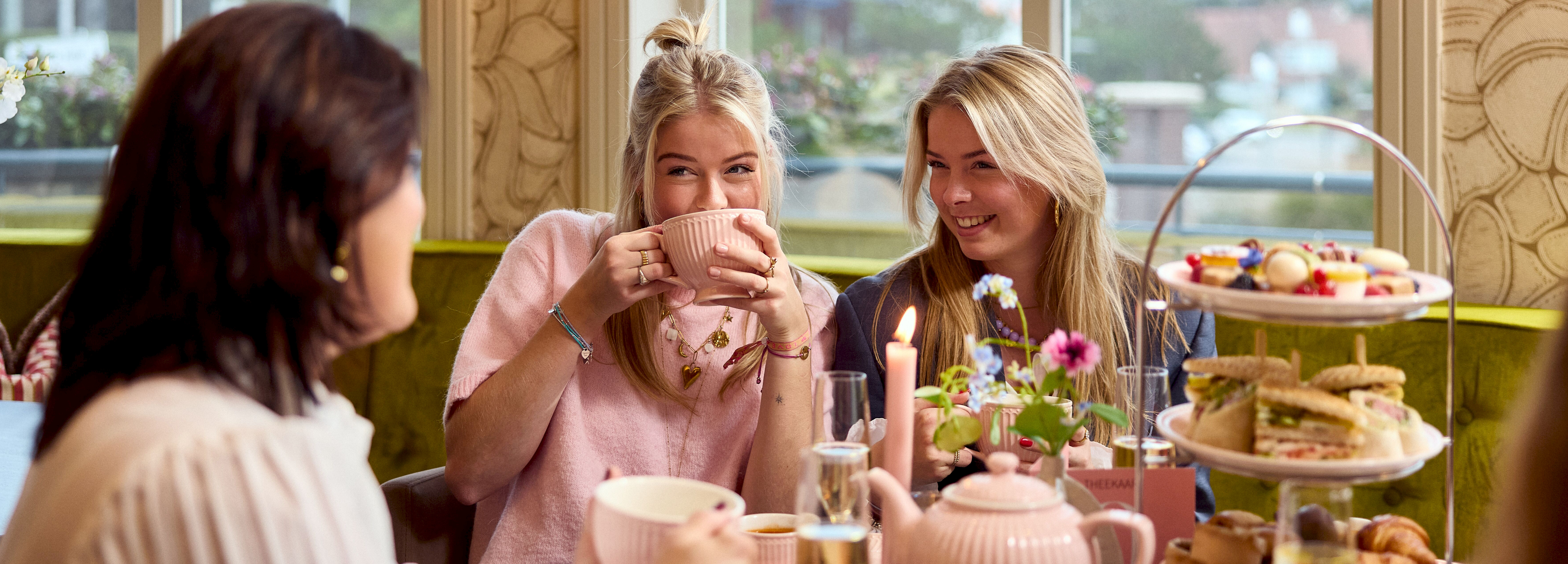 Lekker bijkletsen onder het genot van een pot thee en diverse lekkernijen kan natuurlijk het beste tijdens een High Tea by Toos bij het Van der Valk Palace Hotel Noordwijk.